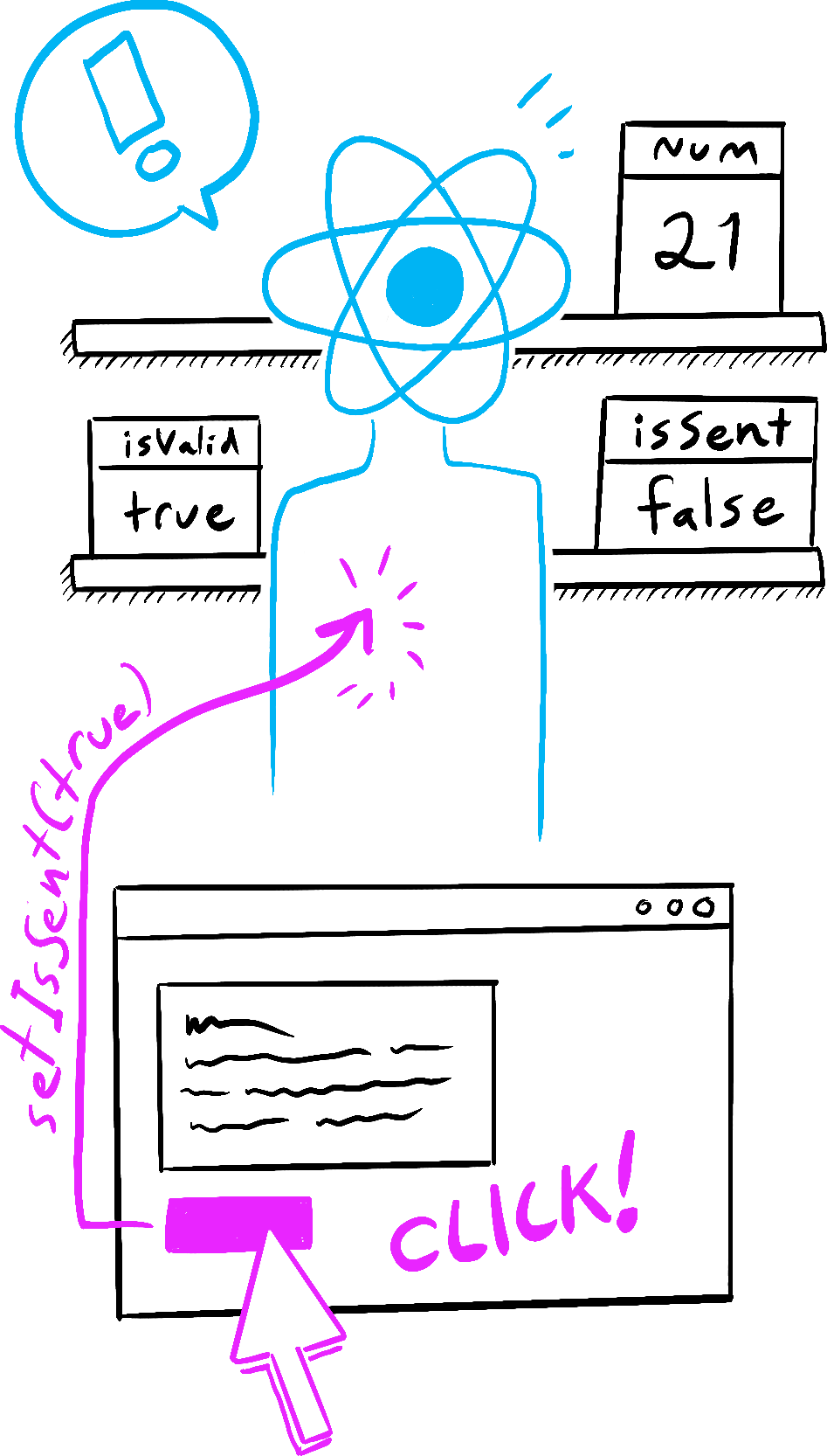 3. React melakukan render ulang pada komponen tersebut sesuai dengan nilai isSent yang baru.